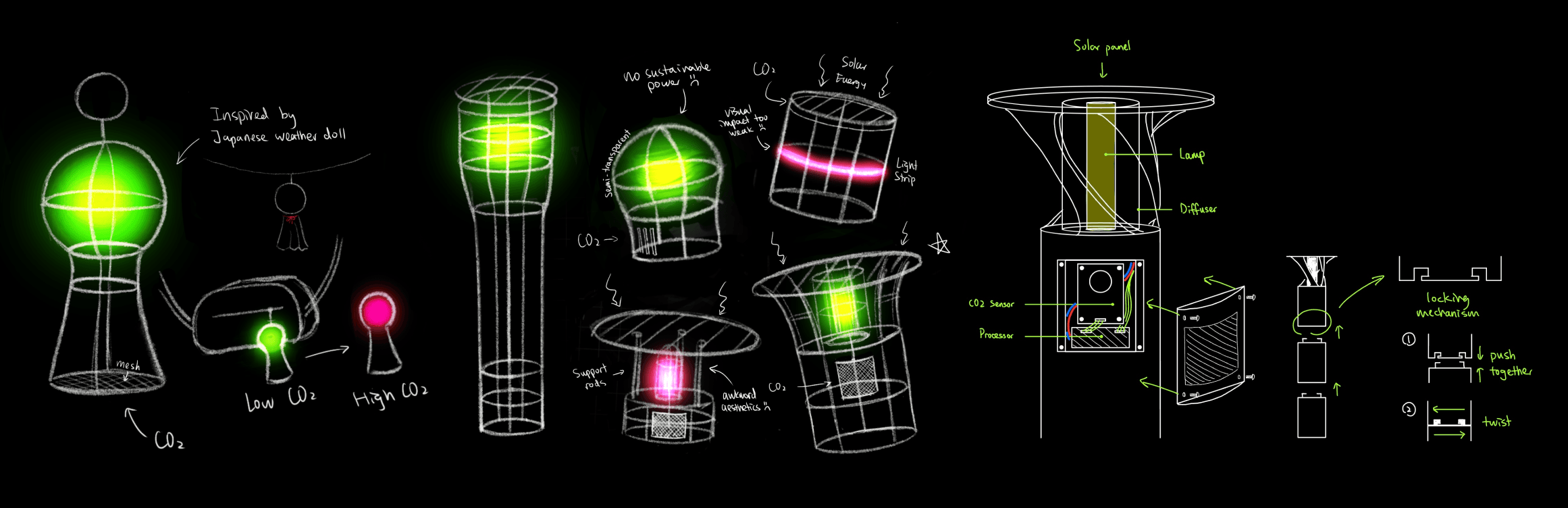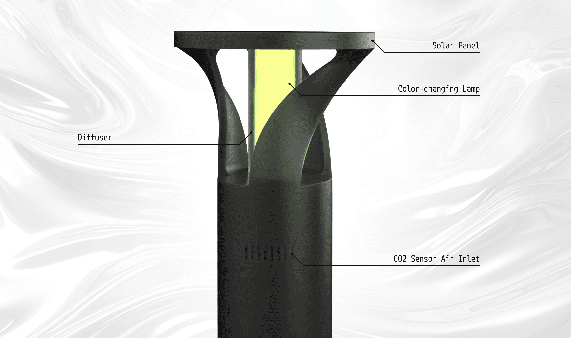 This color-shifting lamp responds in real-time to local carbon dioxide levels, transforming air quality into a visible experience. Designed for both public spaces and personal desks, it turns light into awareness—an everyday reminder of our collective footprint.