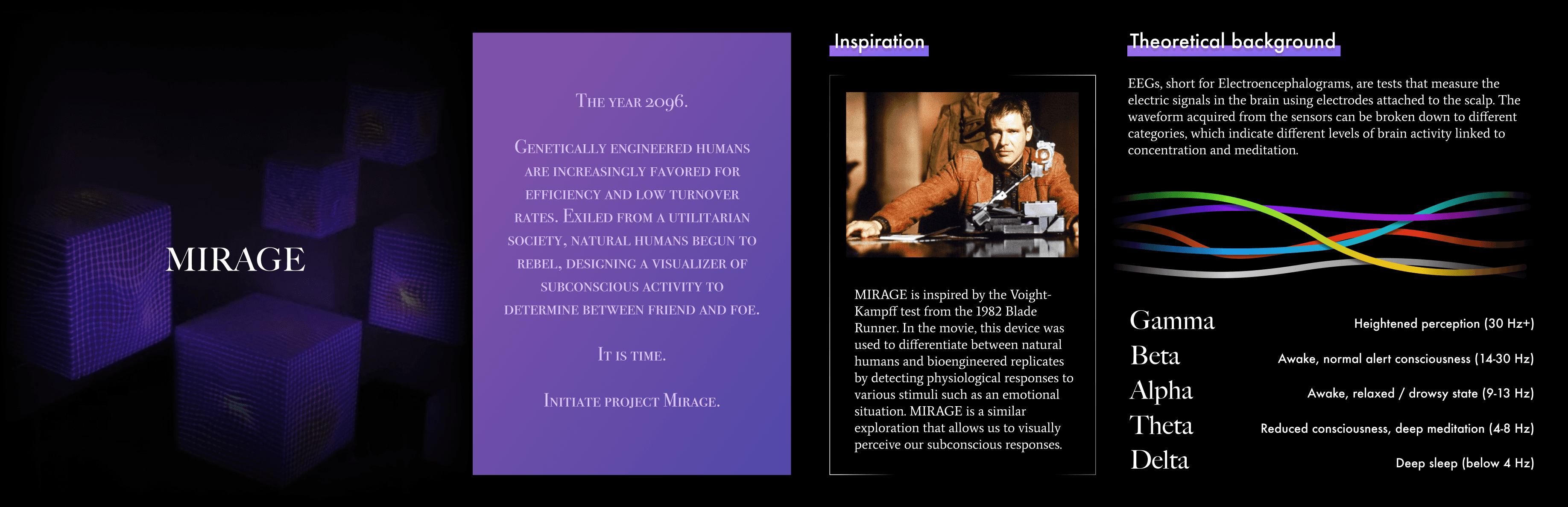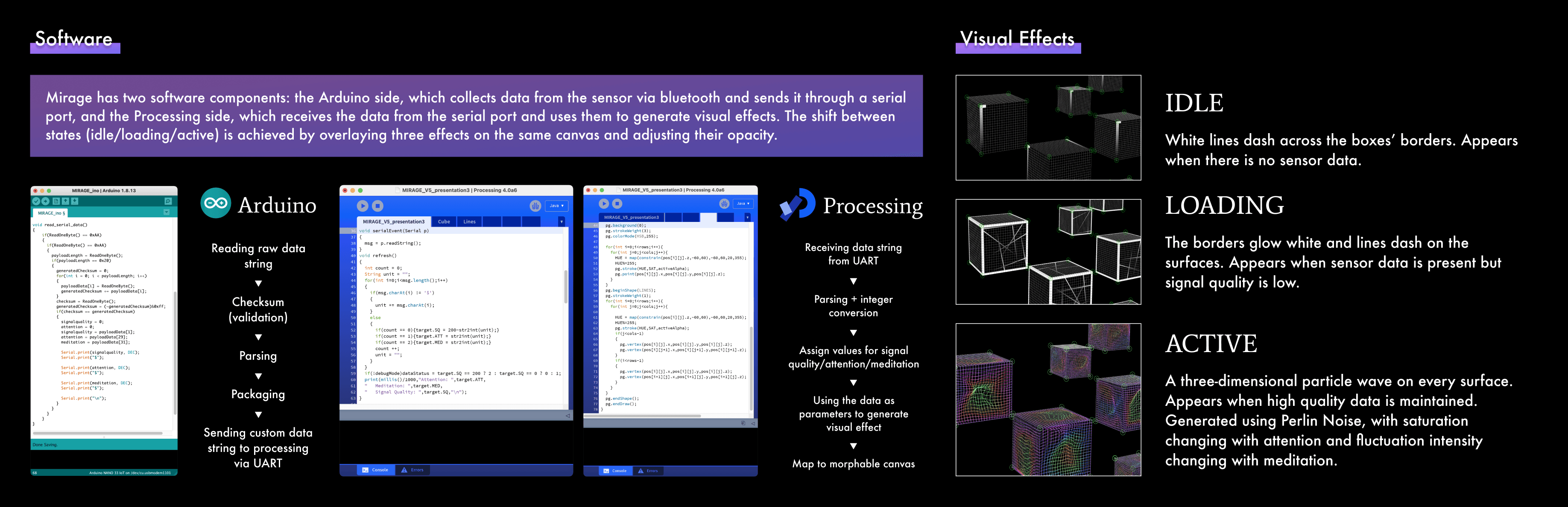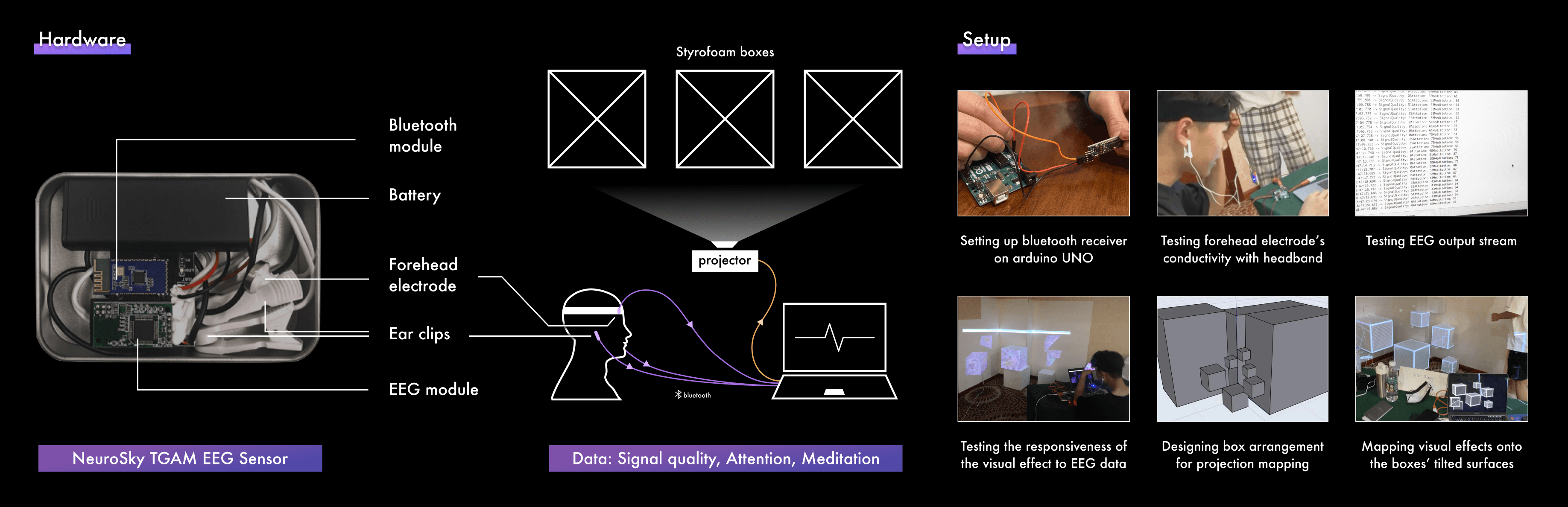 Mirage invites you into this unseen world. Using an EEG sensor, it captures your brain’s activity, translating it into ethereal particle effects that ripple across a projection. In that moment, your subconscious is no longer silent—it takes form before your eyes.